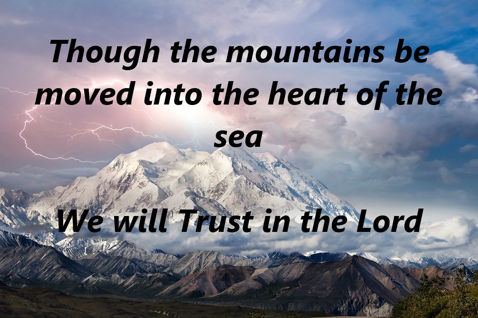 God is our refuge and strength, a very present help in trouble. Therefore we will not fear though the earth gives way, though the mountains be moved into the heart of the sea, though its waters roar and foam, though the mountains tremble at its swelling. Psalm 46:1-3