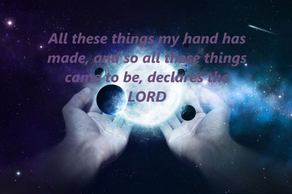 All these things my hand has made, and so all these things came to be, declares the LORD. But this is the one to whom I will look: he who is humble and contrite in spirit and trembles at my word. Isaiah 66:2