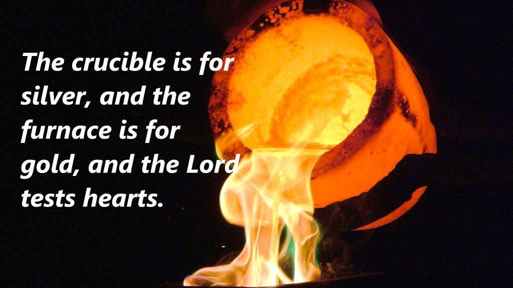 The crucible is for silver, and the furnace is for gold, and the Lord tests hearts. Proverbs 17:3