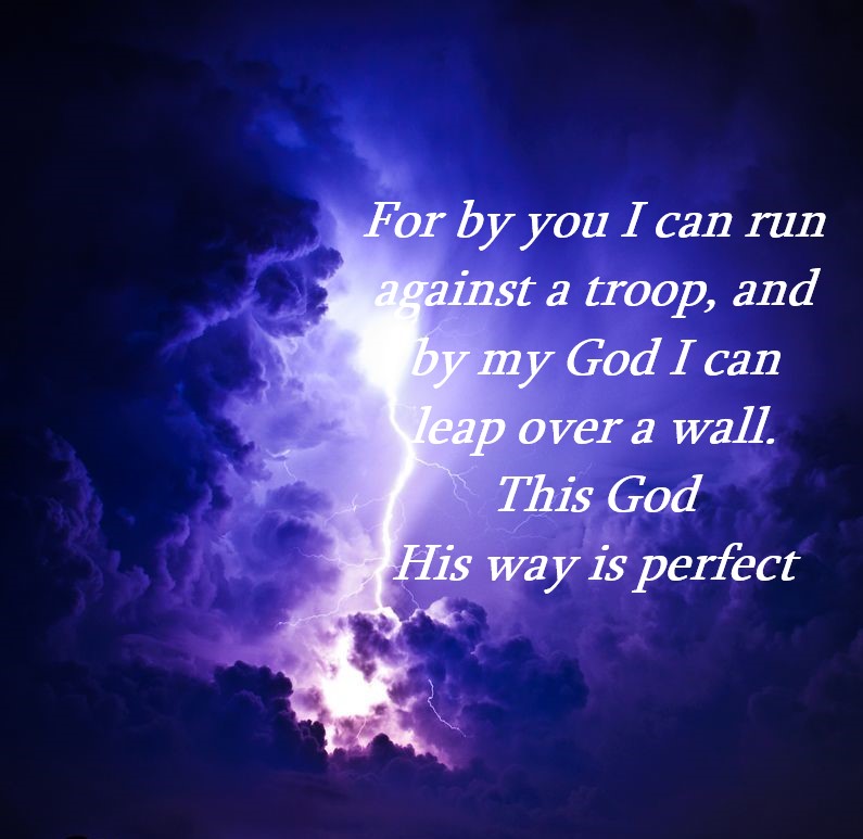 For by you, I can run against a troop, and by my God, I can leap over a wall. This God—His way is perfect; the Word of the Lord proves true; He is a shield for all those who take refuge in Him. For who is God but the Lord? And who is a rock except our God?