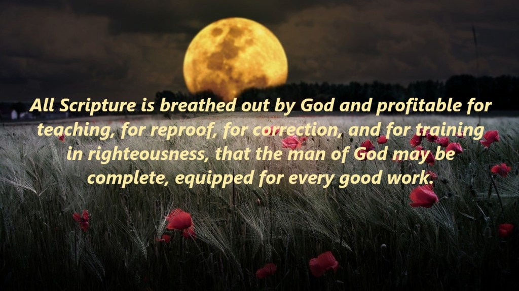 All Scripture is breathed out by God and profitable for teaching, for reproof, for correction, and for training in righteousness, that the man of God may be complete, equipped for every good work. 2 Timothy 3:16-17