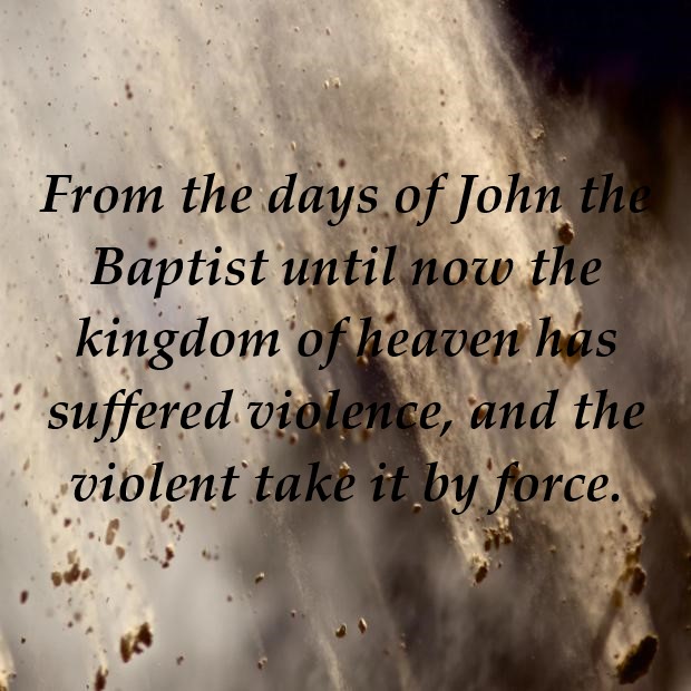 Truly, I say to you, among those born of women, there has arisen no one greater than John the Baptist. Yet the one who is least in the kingdom of heaven is greater than he. From the days of John the Baptist until now, the kingdom of heaven has suffered violence, and the violent take it by force. For all the Prophets and the Law prophesied until John, and if you are willing to accept it, he is Elijah who is to come. He who has ears to hear, let him hear. Matthew 11:11-15