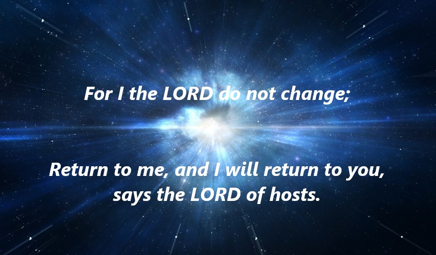 “For I the LORD do not change; therefore you, O children of Jacob, are not consumed. From the days of your fathers, you have turned aside from my statutes and have not kept them. Return to me, and I will return to you,” says the LORD of hosts. Malachi 3:6-7
