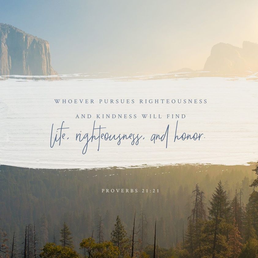 Whoever pursues righteousness and kindness will find life, righteousness, and honor. Proverbs 21:21