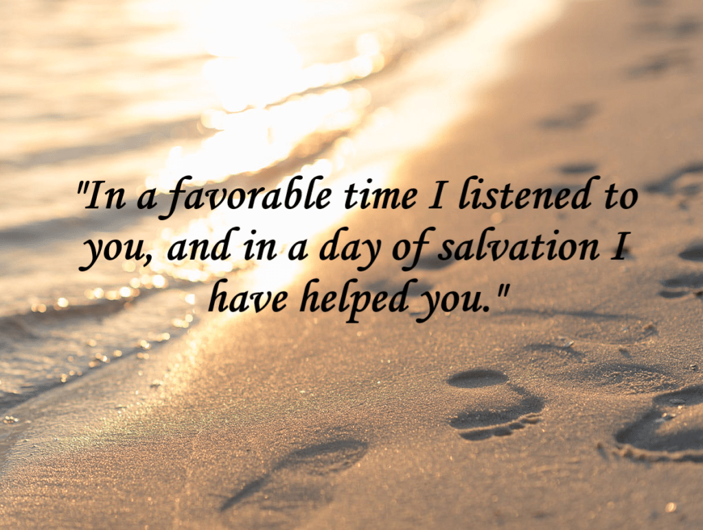 2 Corinthians 6:2 For He says, “In a favorable time I listened to you, and in a day of salvation I have helped you.” Behold, now is the favorable time; behold, now is the day of salvation.